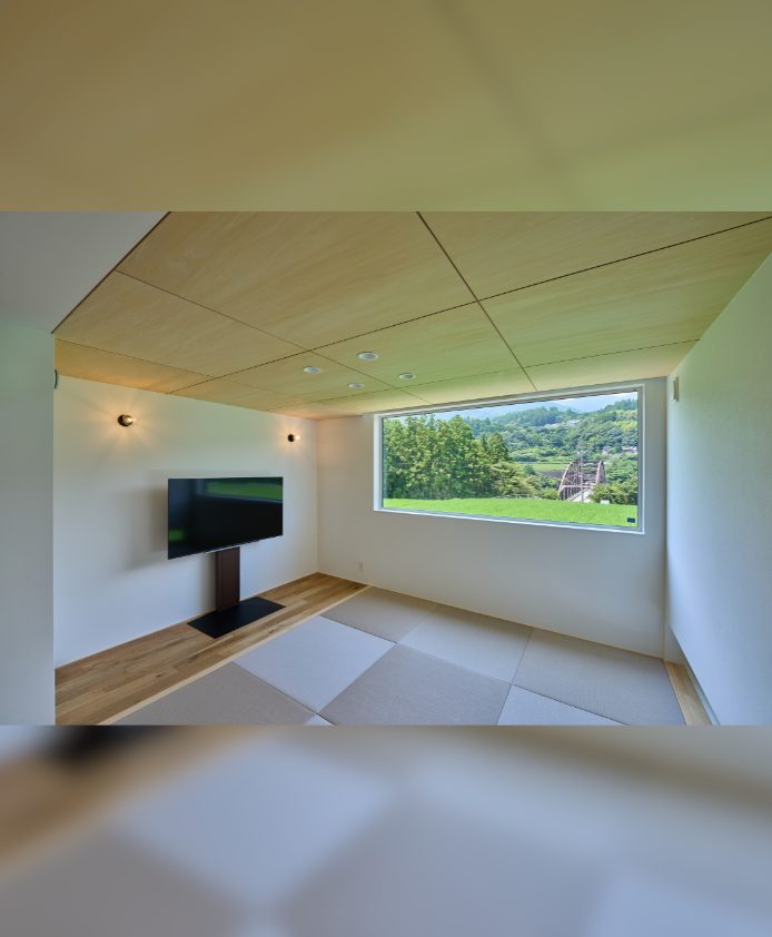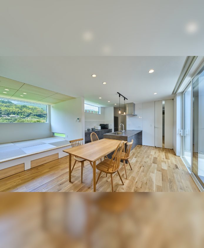 特大のピクチャーウィンドウで四季を満喫 癒やされる平屋のガレージハウス M様邸 延べ床面積 28.56坪(94.40㎡) 竣工 2024年5月 エリア 香南市香北町 ポイント リビングに設置した特大ピクチャーウィンドウはまるで絵画。自然やアウトドアが大好きなご家族の、四季を満喫出来る平屋ガレージです。